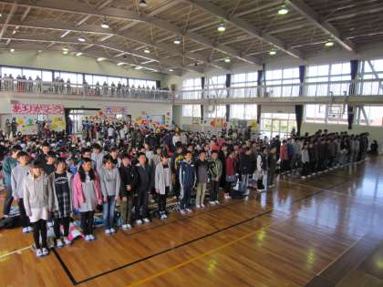 ★今日は6年生を送る会でした。5年生が会場準備や進行役となって会を盛り上げ、1年から5年生までの出し物に6年生達への感謝の気持ちや大きな期待を込めて取り組みました。6年生の発表では、素晴らしい合奏と6年生の思いが込められた言葉、そして美しい歌声の合唱が披露されました。最後に「明日にとどけ」の全員合唱の歌声が体育館中に響き渡りました。見来て下さっていた学校評議員さん方も「素晴らしいですね。感動しました。」と。本当に素晴らしい送る会ができました。見に来てくださっていた保護者の皆さんも大きな成長を実感できたと思います。