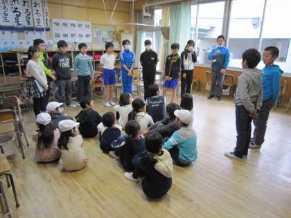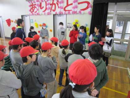 ■縦割り集会の最終回でした。今回は5年生が企画準備進行をしてくれました。あいにくの雨で教室や体育館での活動となってしまいましたが、5年生が考えた遊びを皆で楽しみました。最後に、これまで頑張ってきた6年生へ感謝の言葉を伝えて終了。1年生から6年生までの縦のつながりをこれからも大事にしていけると良いですね。
