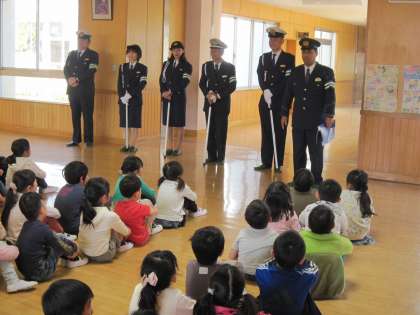 ★入学して最初の自力下校する時です。伊勢崎警察署の毛利さんと玉小区の交通指導員さんにお話をしてもらい、方面別に集団下校しました。今週いっぱいは、先生の先導もつきます。今年は迷う児童もなくきちんと下校できています。素晴らしいですね。
