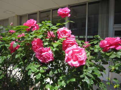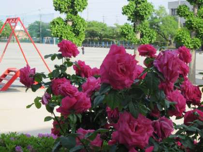 ◎学校の中庭や職員室前に植えてある薔薇(マリアカラス)が満開状態です。