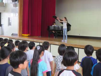 5月28日(月) 全校朝礼1回目 「めあてや目標、夢叶える玉小」 ハッピーあいさつ運動