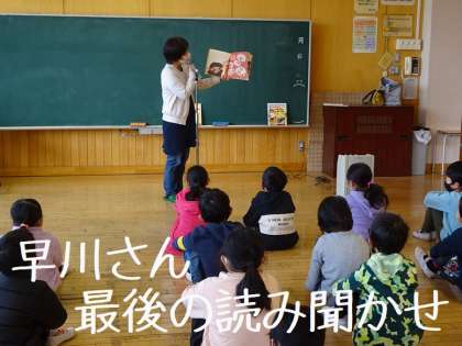 ■今年度の読み聞かせの活動も本日18日の最終回で幕を閉じました。新型コロナ対応の中、スタートできるか心配だった夏休み明け、低学年に限定こそしましたが、毎週の読み聞かせを続けてくださり、学校として本当に感謝しています。玉小の子ども達あっての活動として、本の良さや楽しさを感じさせたい気持ち一心でボランティアさん達は臨んでくださいましたね。前号でもお知らせした通り、人材不足で「毎回のやりくりも大変だ」とうかがっています。読み聞かせのお手伝いをしていただける方は是非ご一報ください。よろしくお願いします。4月になって、玉小の新体制になってから、どのようにスタートするかをよく相談して始められればと思います。読み聞かせがスタートするまでは、家庭や町の図書館などで本に親しんで下さいね。代表の冨澤さんには新年度もお世話になりますが、玉小の子ども達をよろしくお願いします。