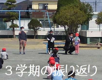 3年生は、お米作りや学校の外に出ての活動を頑張りましたね。授業でもとても真剣に取り組みました。いよい よ4年生、クラブ活動が始まります。自転車にも乗れるようになりますよ。ほんのちょっとですけど高学年の仲間 入りができる学年です。いろいろなことに頑張っていきましょう。