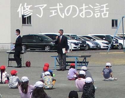★令和2年度の「修了式」が無事に終わりました。1〜5年生達が校庭に並び、久しぶりに校歌を3番まで唱いました。はじめに、135年生の代表児童が、3学期の振り返りと抱負をハキハキと発表してくれました。次に校長の話。最後は、小林先生から春休みは規則正しい生活を送りましょうと話がありました。