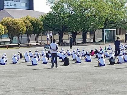 4月21日(水)体育集会 公開日 2021/04/21 更新日 2021/04/21 児童の活動 今年度初めての体育集会がありました。今日は、並び方や間隔のあけ方などを実際に試して確認しました。運動にはよい季節です。思いっきり体を動かしましょう。