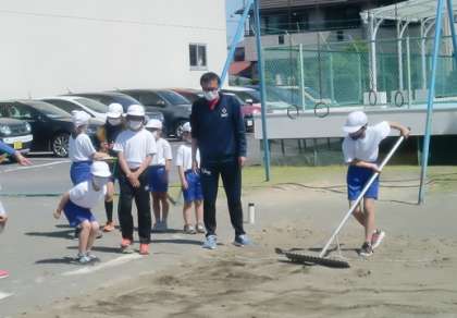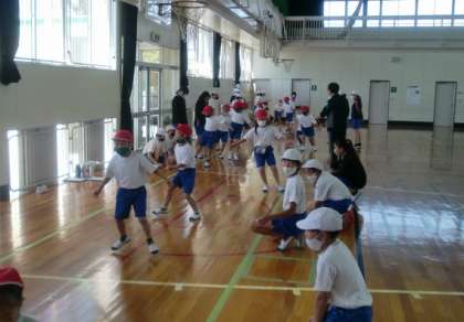 新体力テストが始まりました。今日は、6年生が1年生に、5年生が2年生に教えながら実施しました。上級生がていねいにやり方を教え、計測や記録もしてくれました。1、2年生も元気いっぱいがんばりました。結果は、玉小の子どもの体力の向上に生かしていきます。