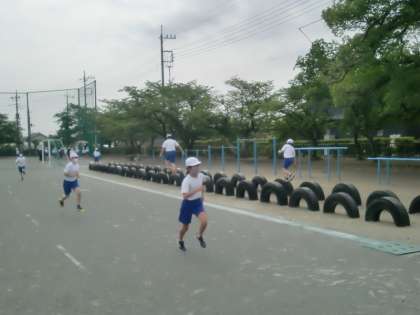 水曜日の朝は体育集会です。今日はサーキット運動です。感染予防として学年ごとにエリアを区切って行います。走る、跳ぶ、投げる、バランスをとるなど、いろいろな要素を含んだサーキット運動です。7分間の運動ですが、運動量は十分です。体育委員さんが体操や運動の見本を見せたりして進めてくれました。そして教室に戻る前には手洗いを忘れずに。