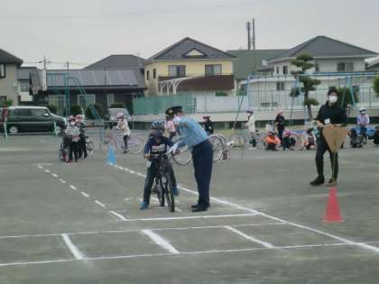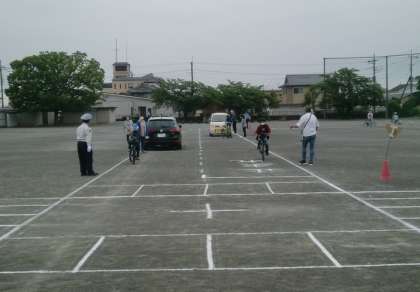 伊勢崎警察署の警察官の方、交通指導員さん、保護者の方にお世話になり、4年生の自転車安全教室を行いました。自転車に乗り出す時、交差点では、車が駐車してある時など、安全な走行の仕方を実際に自転車に乗って確かめました。自転車は便利ですが、危険も伴います。今日の体験を生かして、安全に自転車に乗れるようにしてください。