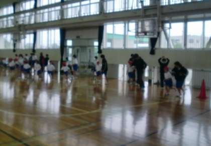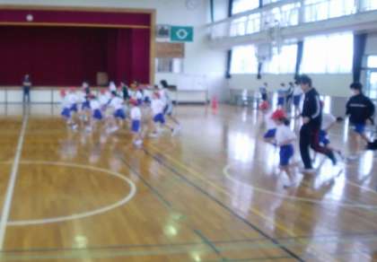 1年生の体力テストに6年生が協力しました。今日は持久力を測定する20mシャトルランです。ペースを作るためにお手本で一緒に走ったり、励ましの声をかけたりしながら行いました。