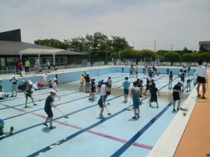 5・6年生がプール清掃をしてくれました。6年生は主にプール内の清掃です。昨年度はプールを開くことができなかったので、かなりの量の枯葉や泥が溜まっていて、例年以上に大変でした。しかし、さすが6年生です。しっかりと、水が入れられるようになりました。