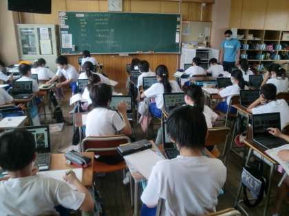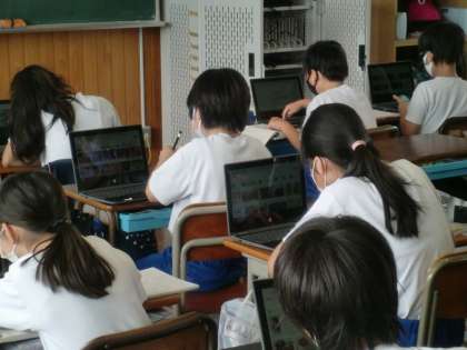 5年生が図工でホワイトボード伝言板を作る時のデザインを考えています。個々のタブレットで、動物、食べ物、場所など、自分のデザインのヒントとなる画像を検索しています。いろいろな使い方ができますね。