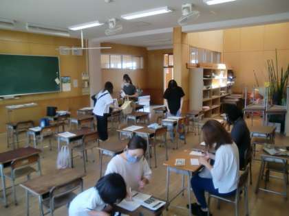 役員さんが、ご家庭と教職員から集めたPTA会費を集計しています。PTAは、家庭と先生が協力して子どもの健やかな成長をサポートするための組織です。環境整備や行事、安全等の協力などを主な活動としています。コロナ禍のため、PTA活動も制限されていますが、できる範囲で活動できたらと思います。
