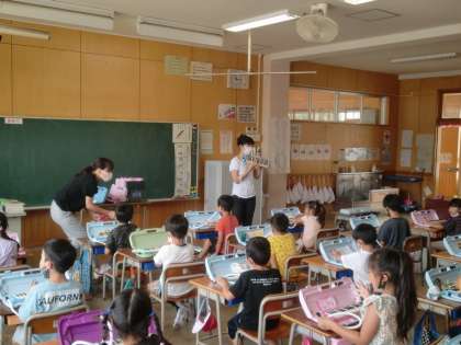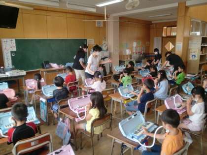 1年生で講師の先生をよんで鍵盤ハーモニカ講習会を行いました。例年は学年で行っていましたが、今年度はクラスごとに人数を少なくして行いました。指の使い方や息の使い方など、なかなか難しかったけど、最後は音楽に合わせて吹くことができました。
