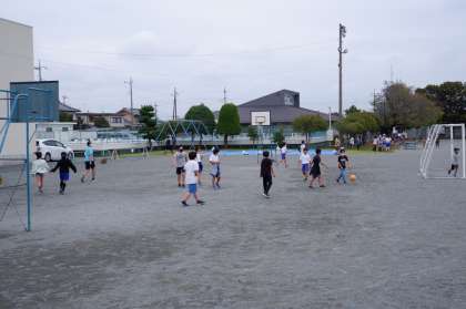 毎週木曜日はワクワクデーです。ワクワクデーは、休み時間に外で遊ぼう、という日です。今日は涼しくて外遊び日和です。元気いっぱいの子どもたちにまじって先生の姿もちらほら見えます。
