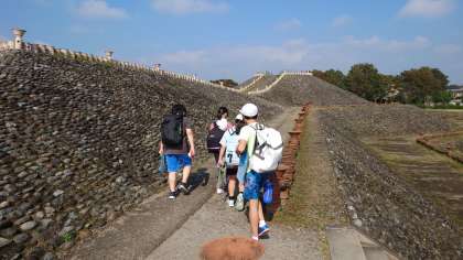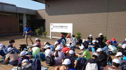 かみつけの里の見学が始まりました。博物館と2つの古墳に分かれて班ごとに見学します。