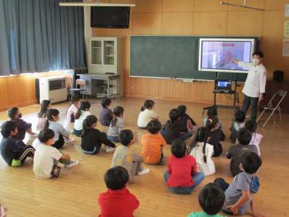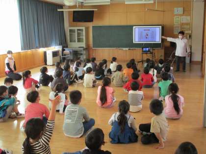 1年生で獣医さんによる動物ふれあい教室が行われました。うさぎの特徴やふれあい方、災害が起きたときのためにゲージなどを用意しておくとよいことなど、映像を見せながらお話してくれました。例年だと実際にうさぎを抱いたり、心臓の音を聞いたりしますが、感染予防のためできませんでした。うさぎに限らず、動物とふれあう機会があるといいですね。