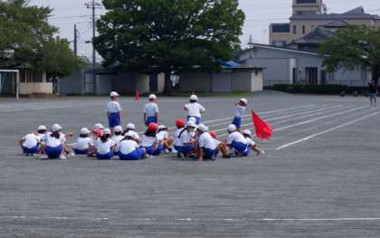 昨日の職員作業で校庭にレーンが引かれました。体育では、50mを走って記録をとっていました。気温も先週までの暑さと違い、運動しやすい気温となっています。今月末の運動会に向けて、少しずつ練習も始まります。