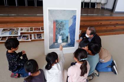 2年生が町のバスを利用して、群馬の森にある県立近代美術館に行きました。子どもたちに美術品に関心をもってほしいという思いから、初めて行った行事です。最初に、所蔵の絵画のポストカード並べ、「うれしい」「元気」などのいろいろなキーワードに合う絵を一人一人が選び、なぜその絵を選んだかをみんなに説明するワークショップを行いました。その後、ボランティアさんと対話をしながらグループで1枚の絵を鑑賞しました。「どんな音が聞こえる?」「このヤギはなんて言っているかな?」「逆さまにみてごらん」・・・・想像力がどんどん膨らんでいきました。