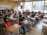 6年生の英語の時間です。 今回のテーマは「週末にしたことを伝え合って、お互いの生...
