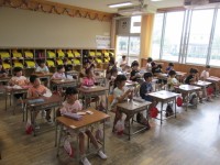 9月19日(木) 2時間目の1年生です。1組は図工、2組は音楽です。入学して半年...