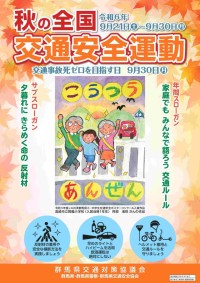 9月20日(金) 秋の全国交通安全運動です。期間は9月21日(土)から9月30日...