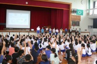 9月25日(水)朝の時間の体育集会です。運動会の応援団が結成されました。開閉会式...