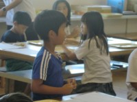 今日の振り返りでは「さわって四角がわかるように」「伊特のお友だちが楽しめるように」「形がはっきりするように」「だれにでもイメージしやすいように」工夫して作ったとの感想がたくさん出ました。相手の気持ちを...