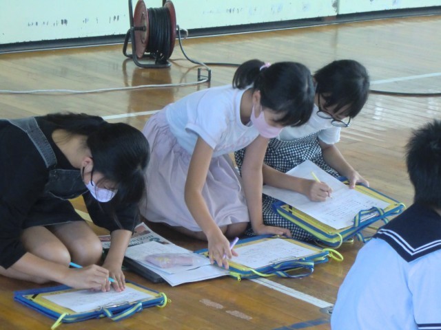 フェリーチェ玉村国際小学校の6年生と上陽小学校の6年生の交流学習が行われました。様々な国について英語でスピーチをし合っていました。円の中を一周し、全員と交流する流れとなっていました。最初は緊張気味でしたが、交流が進むにつれ段々と会話が弾み笑い声が体育館に響くようになりました。同じ学区内にある異なる学校ですが、とてもよい勉強や出逢いになりました。フェリーチェ玉村国際小学校のみなさん、先生方。上陽小学校にご来校いただき本当にありがとうございました。また次回の交流を楽しみにしています。