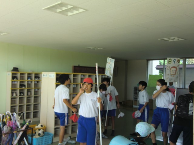 職員室まではっきりと聞こえてくる「おはようございます!!」という挨拶の声に導かれて児童玄関に向かうと、高学年の児童が挨拶運動をしていました。朝から笑顔で元気のよい挨拶を交わし合えると「一日頑張ろう!!」という気持ちになります。挨拶の輪がどんどん広がっていきますように。