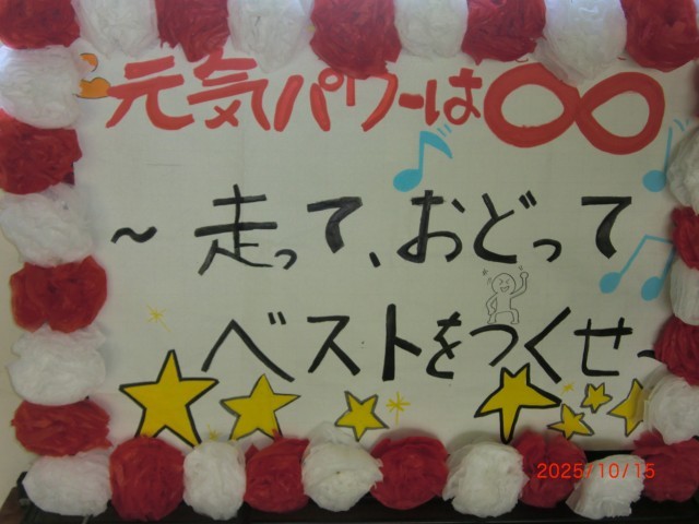 元気パワーは∞~走って 踊って ベストをつくせ~ 公開日 2025/10/15 更新日 2025/10/15 学校行事 本日の運動会は予定通り実施いたします。「元気パワーは∞ ~走って 踊って ベストをつくせ~」をスローガンに練習に取り組んできました。今日は爽やかな秋空のもと、子供たちが∞のパワーを発揮します。ご来校を心よりお待ちしております。