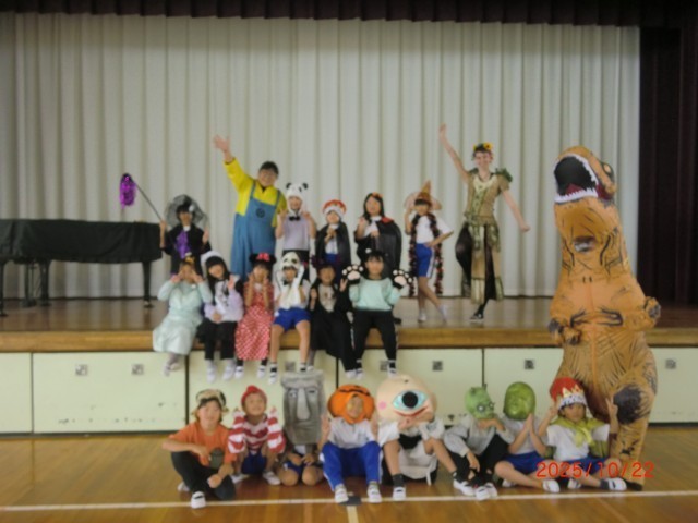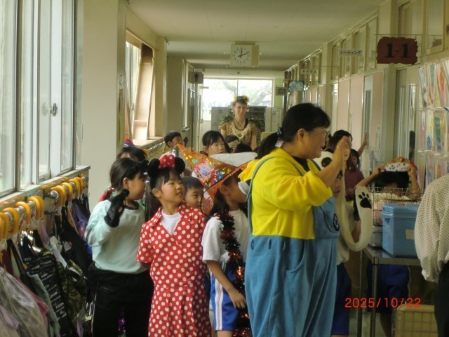 今日は2年1組のハロウィンパレードでした。各教室名を英語で確認しながら歩きました。今回は校長室にもサプライズがあり、みんな大喜び。今日も楽しい英語の時間を過ごすことができました。