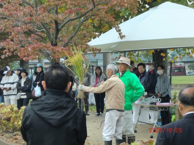 6月に田植えをした稲が立派に育ち、収穫の時期を迎えました。本日、玉村町農業体験クラブの方々のご厚意により、稲刈り(農業体験教室)が開催されました。本校の3年~5年生の希望者と保護者、上野村子供育成会、フェリーチェ玉村国際小学校、おひさま保育園、みちくさやのみなさんと、たくさんの参加者が集まりました。農業クラブの方々のご説明を受け、いよいよ稲刈りスタートです。