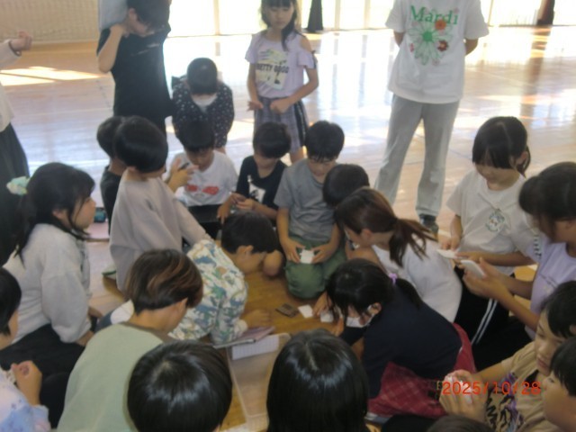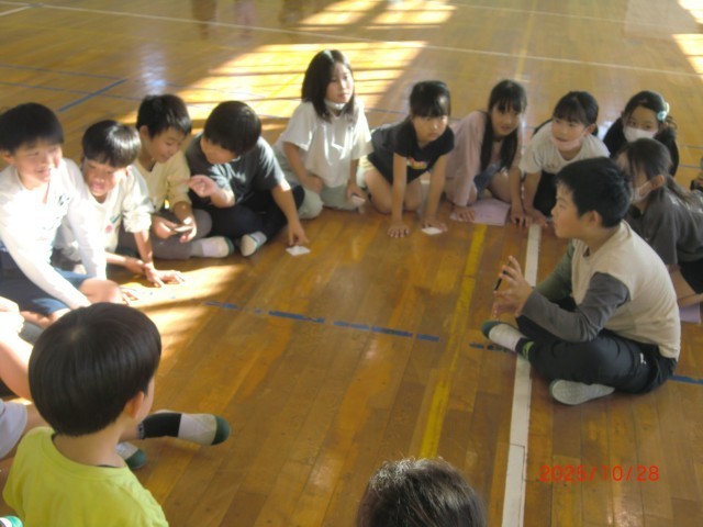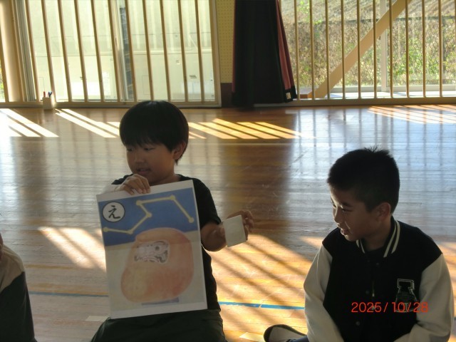 11月5日に行われる伊勢崎特別支援学校との交流会に向けて、4年生が3年生に3D上毛かるたについて紹介する活動でした。「ねこ」「キャンディ」「しんかんせん」チームに分かれ、4年生は前回の交流会の様子や3D上毛かるたについて3年生に様々な手段で教えていました。3年生は3Dかるたを、指先で触れながら4年生のお話に身を乗り出して聞いていました。11月5日の交流学習では、この3Dかるたを通して心温まる交流ができるといいですね。