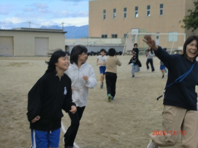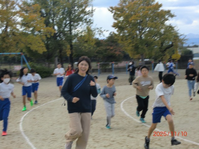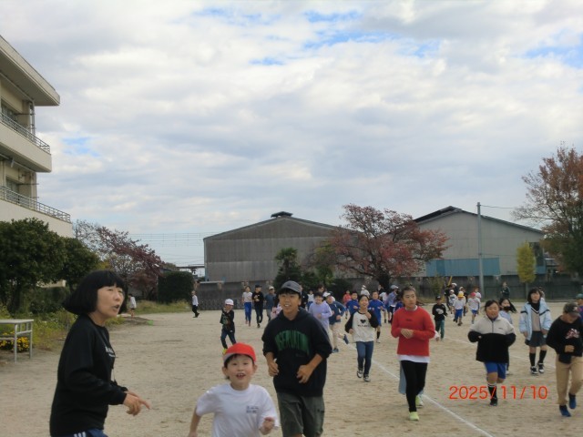 本日から持久走大会に向けて、20分休みに全校で持久走練習に取り組みます。音楽に合わせて、自分のペースで目標を持って走っています。今日は「持久走向上週間」の初日でしたが、たくさんの児童と先生が共に汗を流していました。すれ違うと「1回も休まずに走っています!」や「10周走りました!」など、爽やかな笑顔で報告しながら練習に励む姿を頼もしく感じながら、一緒に気持ちよく走ることができました。走ることは自分との闘いですが、みんなで走ると心強くなりますね。明日も走る喜びを味わいながらコツコツと頑張りましょう。