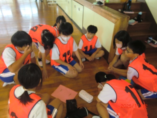 本日は中部教育事務所の計画訪問でした。本校の取り組みや授業の様子をご参観いただき、指導助言をいただきました。今日は授業や指導の様子を紹介します。6年1組体育は「チームの課題にあった練習や作戦を考え、『第3回じゅカップ』での成功を目指そう」をめあてとして、バスケットボールの授業を行っていました。6年生が仲間と関わり合いながら自分たちで学ぼうとする姿がたくさん見られる授業でした。