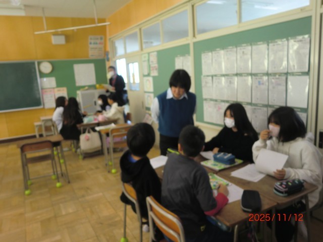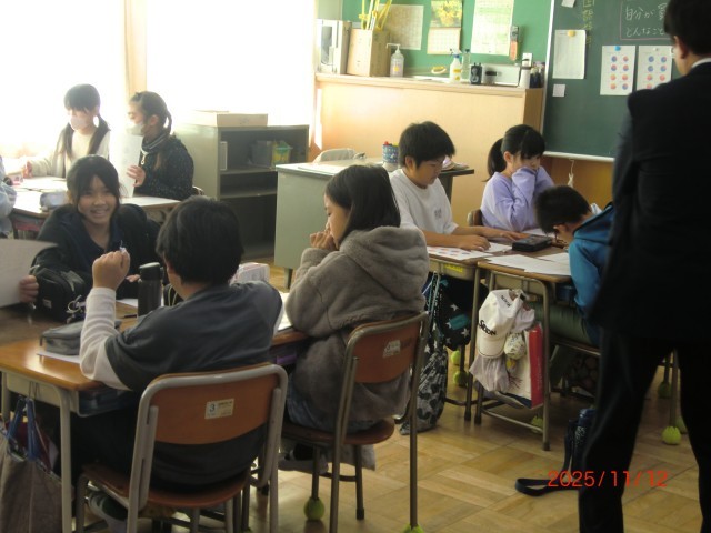 5年1組は単元「生活を支える物やお金」で、「自分で買い物をするときには、どんなことに気をつけてたらよいだろう」をめあてに家庭科の学習をしていました。アンケートをもとに話し合い活動を行い「身近な物の選び方、買い方」について問題を見いだしながら課題解決をしていました。活発な意見交流が印象的でした。