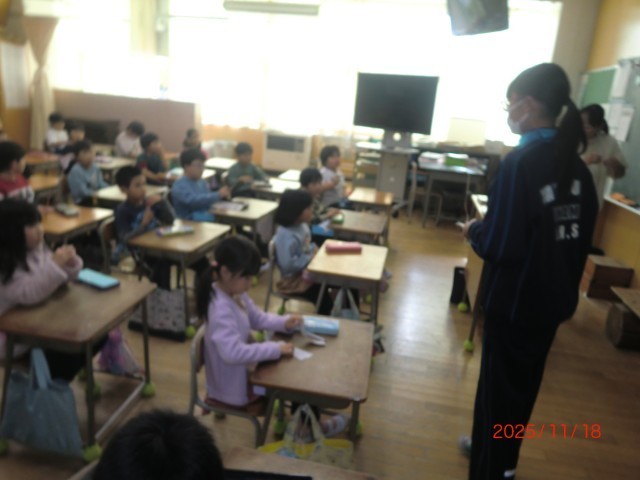 3校時から各教室で授業支援が始まりました。上陽小学校の児童に寄り添いながら、学習や担当の先生のお手伝いを頑張ってくれています。中学生のお兄さんお姉さんと共にお勉強したり勉強したりできるといいですね。