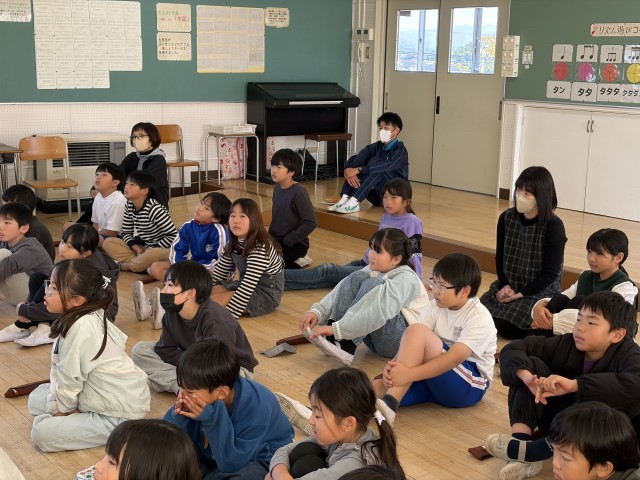 本日4校時の音楽時の時間に、「東京リコーダー協会」より講師の先生をお招きしリコーダー講習会が行われました。「リコーダー名人になるためのコツは何かな?」をめあてに、タンギングや運指の奏法のアドバイスの他に、講師の先生が多様なリコーダーの特徴を生かしてたくさんの楽曲披露してくださいました。曲目は小学生が大好きなジブリ映画トトロから「さんぽ」、鬼滅の刃から「炎」、Creepy Nutsの「 Bling-Bang-Bang-Born」など、演奏が始まるとみんな歓声をあげて、リコーダーに合わせて自然と歌い始めたり踊ったりして、その音楽の世界観に浸っている様子でした。東京リコーダー協会様、今日は遠方から上陽小学校にご来校いただきありがとうございました。とても楽しい講習会でした♫