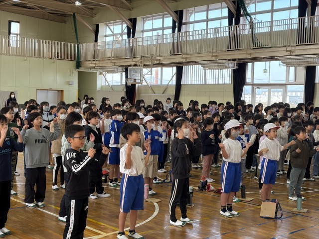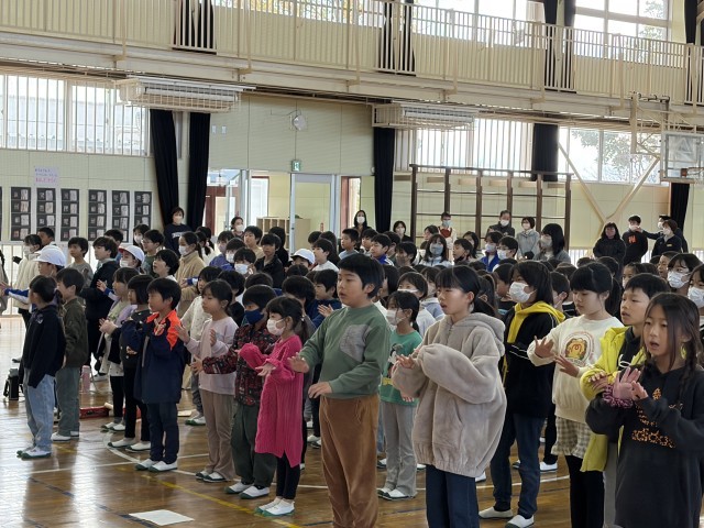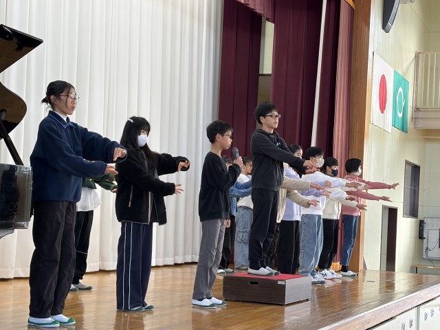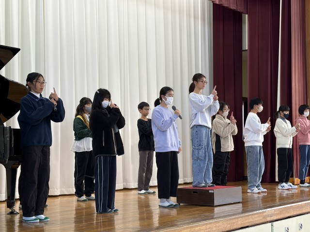 今日の音楽集会は手話の歌「Smile again」でした。音楽委員さんのリードで、パートごとの旋律や手話の確認をしながら練習を進めていきました。全校が手話により親しめるよう、ハロウィンやクリスマス、お正月をどのように表現するか調べたことを教えてくれました。いつも音楽委員さんは工夫を凝らした素晴らしい集会を企画し、全校児童に一体感を感じさせてくれます。次回のクリスマスの歌の企画もとても楽しみです。