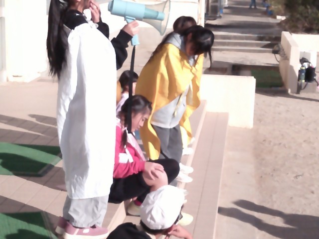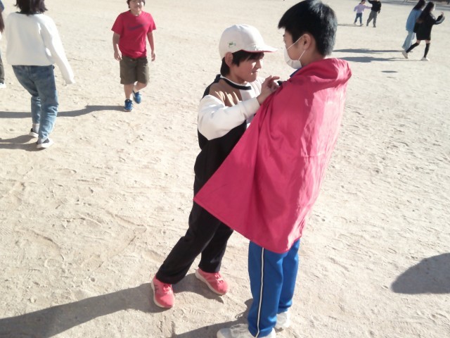 児童会の「ルールレンジャー」による全校遊び集会がお昼休みに行われました。放送の呼びかけにたくさんの児童が集まり、おにごっこをして楽しみました。中学生も交わり微笑ましい時間が流れていました。この活動は10年以上子供たち同士で受け継がれている上陽小学校の伝統です。