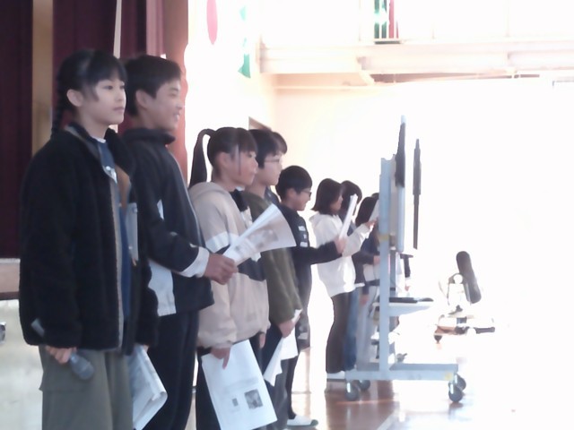 児童集会では学校保健委員による「お口ぽかんをやっつけよう」の発表がありました。前回の学校保健委員会も素晴らしかったですが、本日の発表はさらに全校児童に「伝えよう!」という強い気持ちが加わり堂々とした発表でした。お口の筋肉を鍛える「あいうべ体操」や「パタカラ体操」も高学年を中心に歌声が聴こえてきました。今日の発表を生活の中で取り入れながら、全校でお口ぽかんをやっつけましょう!!