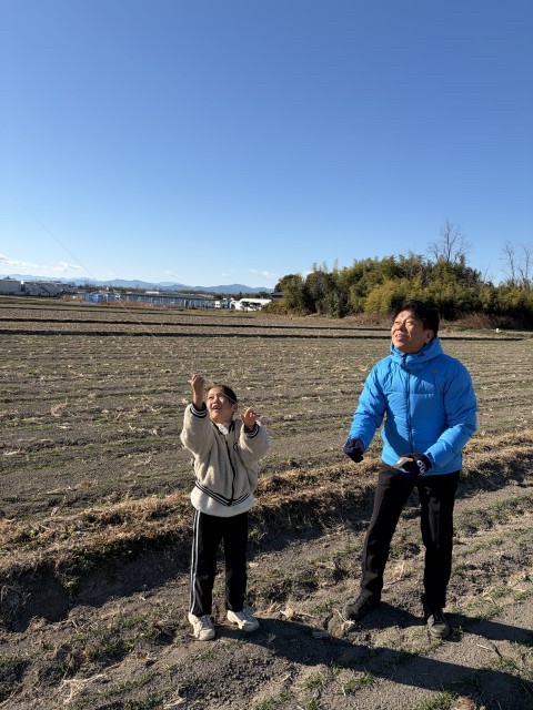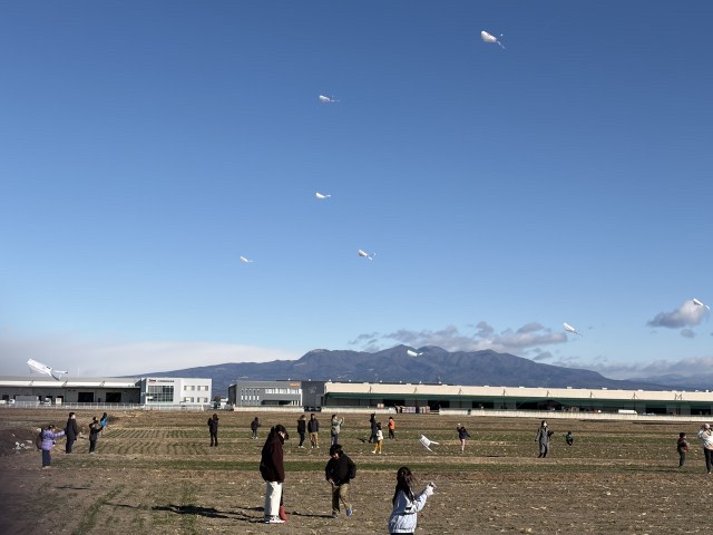 田園凧あげ「天に舞う凧」