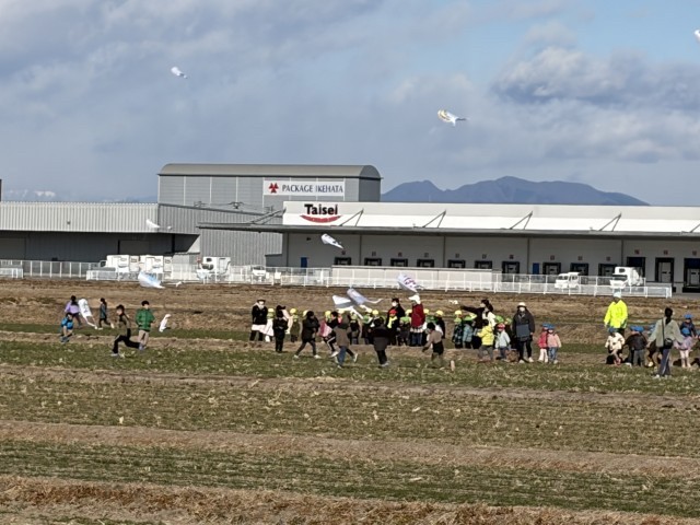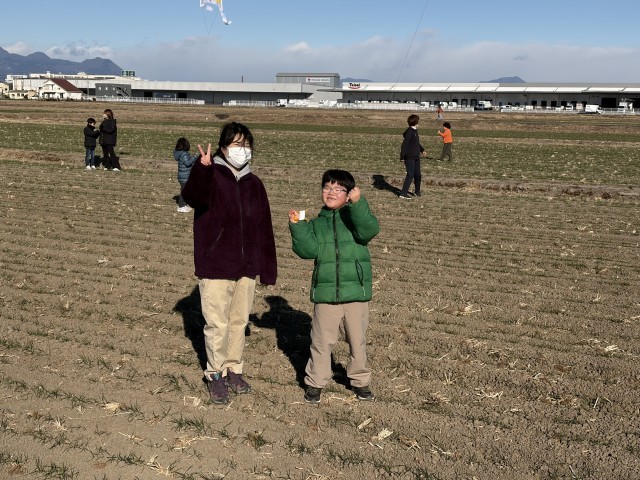 本日の生活科の授業で、地域の方々にご協力いただき広大な田んぼでのびのびと凧あげをさせていただきました。お天気もよく風が適度にあったため、凧あげには最適な天気でした。大空に1年生の凧が舞い、とても美しい光景でした。保護者の方々にもたくさんご参加いただき、凧あげを見守っていただきました。上陽地区の方々の温かさや素晴らしさに触れる幸せなひと時でした。この活動は地域の方のご厚意により長く続けられています。いつも上陽小学校の子どもたちのためにご協力いただき、本当にありがとうございます。