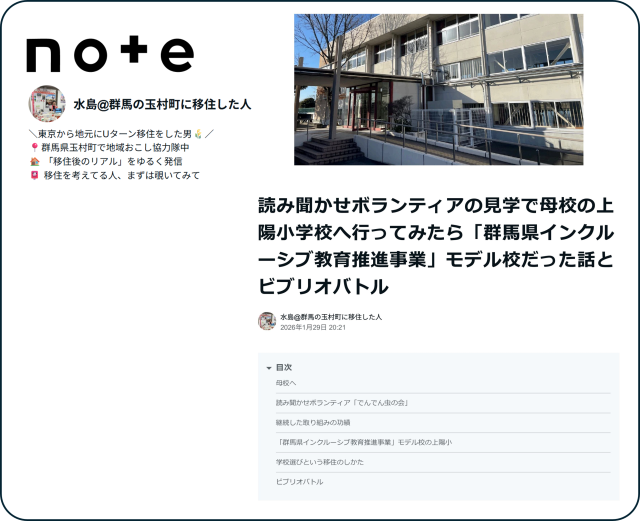 玉村町地域おこし協力隊の水島隊員が運営するnoteにて本校を取り上げていただきました。
