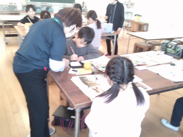 絵手紙サークル「一歩の会」の皆さんを講師に迎えて、3年生が「絵手紙づくり」に挑戦しました。丁寧なご指導のもと、筆を使い温かみのある素敵な絵手紙が出来上がりました。完成した絵は、宮城県女川町に送られます。絵手紙の交流は東日本大地震から毎年続けられています。絵手紙には優しさがたくさん溢れていました。受け取った方にエールが届くといいですね。
