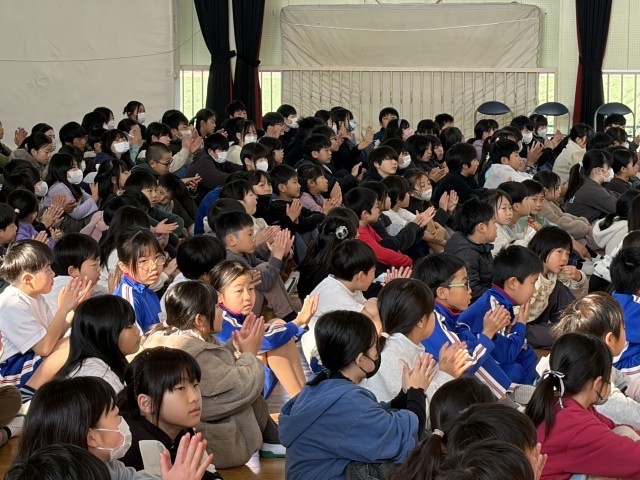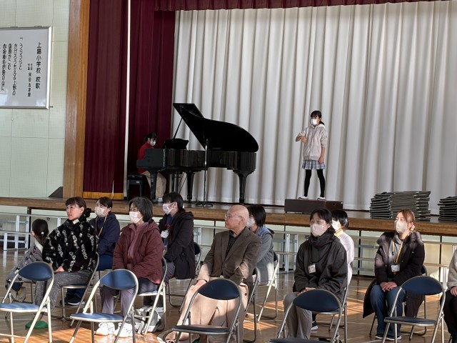 毎日上陽小学校の子供たちのために、支えてくださっている地域の方々に感謝の言葉やお礼の歌を届ける「感謝の会」を開催しました。「見守り隊」の方々には、暑い日も寒さが厳しい日も毎日、安全に登下校ができるよう見守っていただいています。また児童館の方々には放課後から家に戻る間、お勉強や温かな交流の時間を過ごさせていただいています。さらに、「でんでん虫の会」の方々には、読み聞かせを通じ心を育てていただいています。上陽小学校は地域の方々からたくさんの温かなサポートをしていただき、子供たちは安心して学校生活を送ることができています。日頃お世話になっている方々と対面し、改めて地域のサポートのありがたさが感じ取れたのではないかと思います。これからも元気な挨拶と感謝の気持ちを忘れずに学校生活を送っていきましょう。