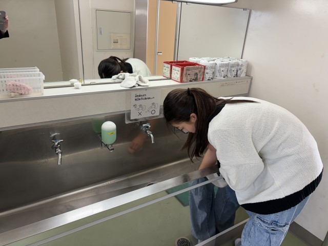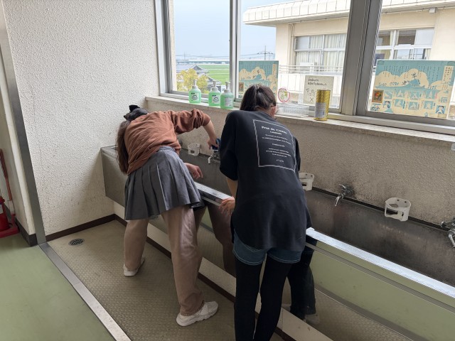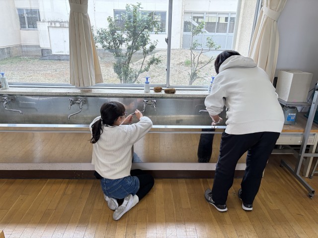 鏡や排水口など、隅々まで一生懸命磨いてくれたお陰で、学校中の流しがピカピカになりました。