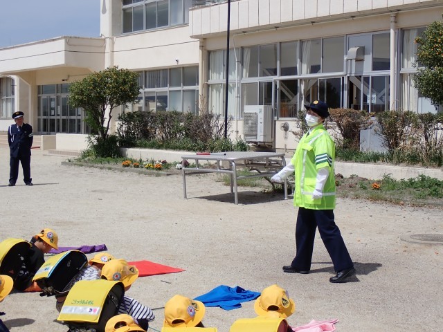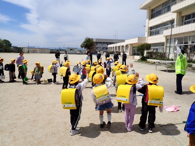 玉村町生活環境安全課と玉村町交番、見守り隊のご協力で1年生の下校指導が行われました。