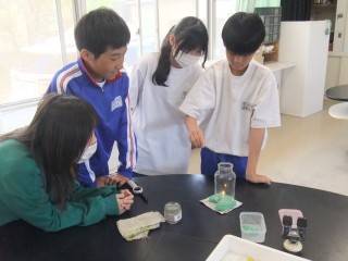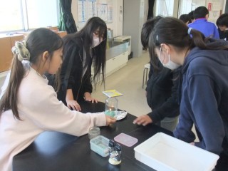 ろうそくの炎と、線香の煙を用いて、集気びんの中の空気の動きを観察しました。