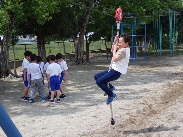 鉄棒、ブランコ、ターザンロープ、サッカーなど、みんな元気に身体を動かしていました。